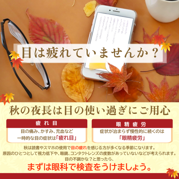 秋天,由于读书和长时间使用智能手机而感到眼睛疲劳的人变多了。